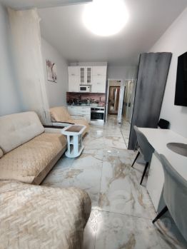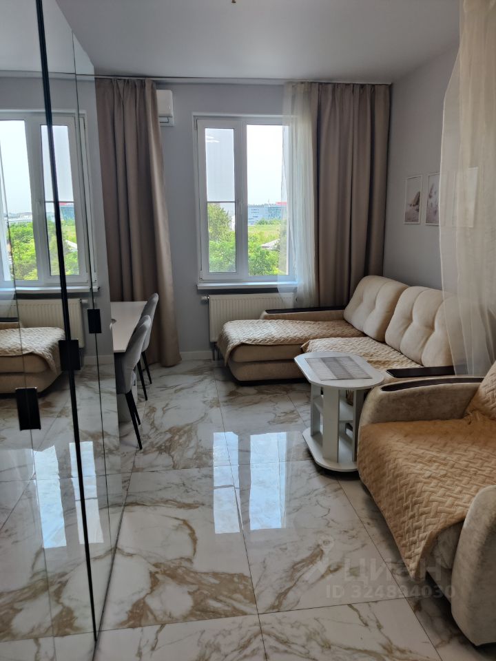 Предлагается в долгосрочную аренду стильная и светлая видовая студия в апартаментах бизнес-класса. Окно выходит во двор - тихо. Территория комплекса закрытая: за безопасность и комфорт проживания отвечает круглосуточная система охраны, есть ресепшен.
