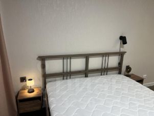 Есть вся необходимая мебель для комфортной жизни: кровать, шкафы, на кухне диванчик, стол и стулья. Из техники: стиральная машинка, холодильник, новенькая посудомоечная машина, плита.