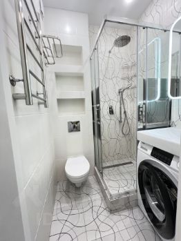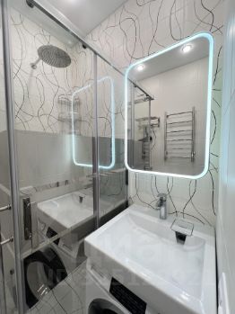 Ванная: пол с подогревом, стиральная машина, душевая кабина.