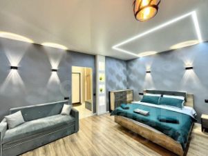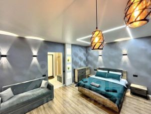 Квартира оборудована всем необходимым для комфортного проживания: двуспальная кровать, диван, кухонная зона, бытовая техника, собственная ванная комната и туалет.