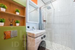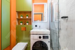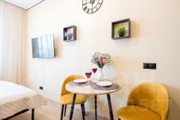 Студия оснащена всем необходимым для комфортного проживания: здесь есть постельное бельё, полотенца и принадлежности для душа. На кухне вы найдёте технику и посуду для приготовления пищи — плиту, духовку, холодильник. Также в студии есть обеденный стол, кондиционер, стиральная машина и высокоскоростной интернет. Для развлечения доступен телевизор со смарт ТВ.