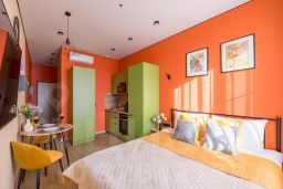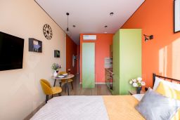 Стильная, уютная студия с двуспальной кроватью. В апартаментах есть все для комфортного проживания: постельное белье, полотенца, чай, сахар, кружки, стаканы. Набор принадлежностей для душа: гель для душа, шампунь, мыло, зубной набор-одноразовые тапочки. Кухонный гарнитур - кухонные принадлежности, посуда, кастрюля, столовые приборы. Обеденный стол со стульями. Плита, духовка, большой холодильник, кондиционер, стиральная машина, высокоскоростной, беспроводной интернет WI-FI, ЖК телевизор со смарт ТВ- Фен, утюг с паром, гладильная доска, сушилка.