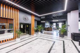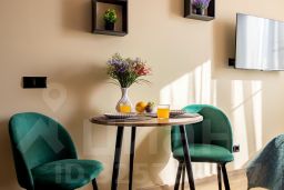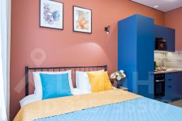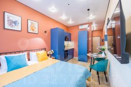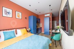 Стильная, уютная студия с двуспальной кроватью. В апартаментах есть все для комфортного проживания: постельное белье, полотенца, чай, сахар, кружки, стаканы. Набор принадлежностей для душа: гель для душа, шампунь, мыло, зубной набор-одноразовые тапочки. Кухонный гарнитур - кухонные принадлежности, посуда, кастрюля, столовые приборы. Обеденный стол со стульями. Плита, духовка, большой холодильник, кондиционер, стиральная машина, высокоскоростной, беспроводной интернет WI-FI, ЖК телевизор со смарт ТВ- Фен, утюг с паром, гладильная доска, сушилка.