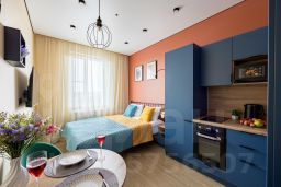 Студия оснащена всем необходимым для комфортного проживания: здесь есть постельное бельё, полотенца и принадлежности для душа. На кухне вы найдёте технику и посуду для приготовления пищи — плиту, духовку, холодильник. Также в студии есть обеденный стол, кондиционер, стиральная машина и высокоскоростной интернет. Для развлечения доступен телевизор со смарт ТВ.