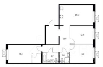 Квартира состоит из трёх изолированных жилых комнат (18 м +12 м +12 м ), просторной и удобной во всех смыслах этого значения кухней-гостиной (20 м ), так- же в квартире два раздельных санузла.Информация о ЖК "Одинцово-1": В ЖК имеется множество детских садов (как государственных , так и частных), две образовательные школы, поликлиника, идёт строительство спортивной школы. На первых этажах зданий расположены: супермаркеты, аптеки, кафе, пункты выдачи