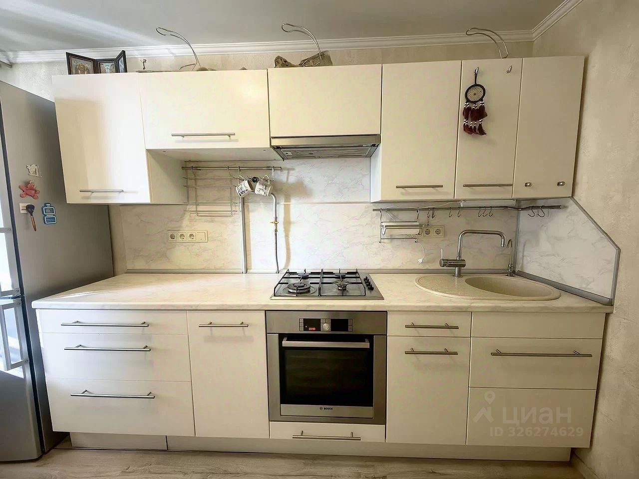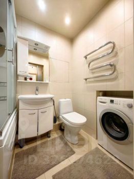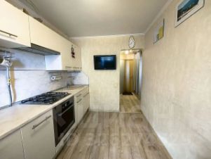 В кухне из техники: двухкамерный холодильник, газовая панель и электрический духовой шкаф, вытяжка, телевизор. В комнате компьютерный стол, компьютерное кресло, двуспальная кровать, вместительный шкаф, телевизор. В ванной комнате: стиральная машина, душевая кабина. Лоджия застеклена. Вид из окна во двор, на противоположную от подъезда сторону.