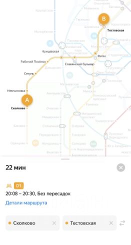 - до Москва-Сити (ст. Тестовская) — 22 мин.