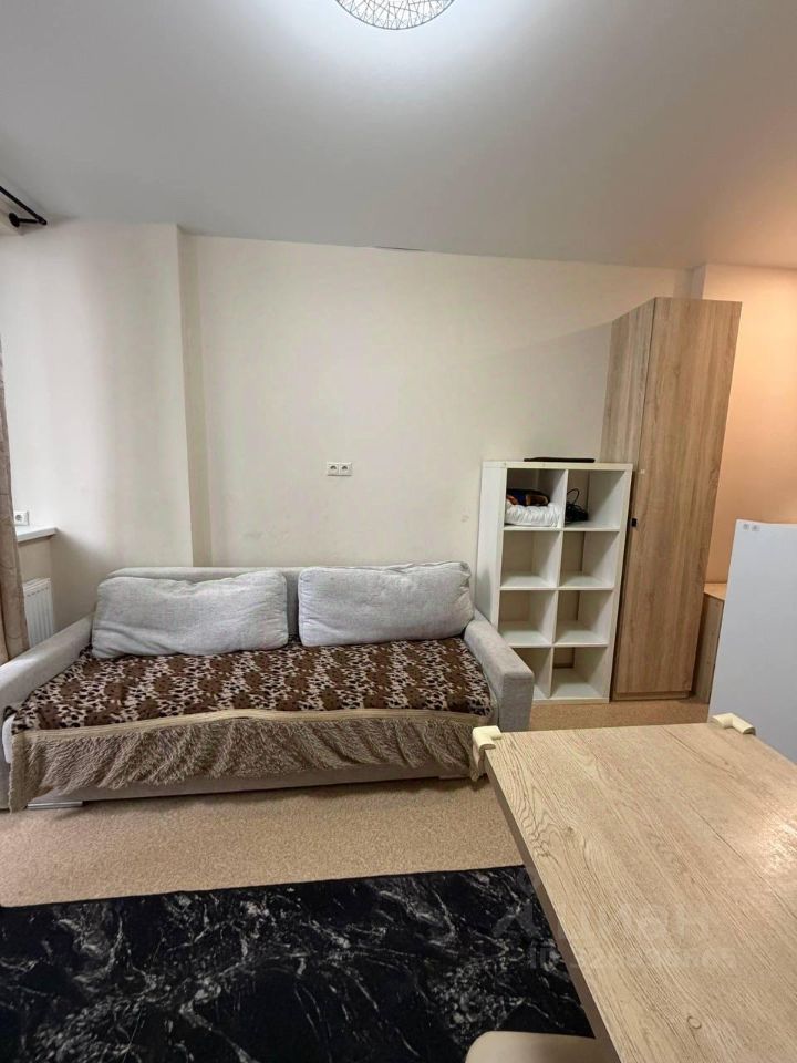 Квартира с косметическим ремонтом и полностью меблирована. В комнате есть вся необходимая мебель для комфортного проживания. На компактной кухне площадью 4 кв. м установлена бытовая техника: холодильник, телевизор и стиральная машина. Санузел совмещенный, оборудован душевой кабиной. Квартира оснащена интернетом, поэтому можно без проблем работать или смотреть фильмы онлайн.