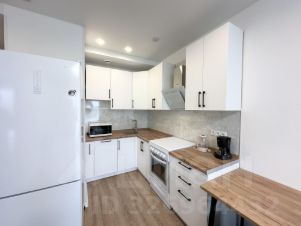 Квартира с евроремонтом, полностью готова к проживанию. В комнате и на кухне есть вся необходимая мебель. Квартира оборудована современной техникой: кондиционер, холодильник, посудомоечная и стиральная машины. Ванная комната оснащена ванной. Совмещённый санузел оформлен в светлых тонах, создавая уютную атмосферу.