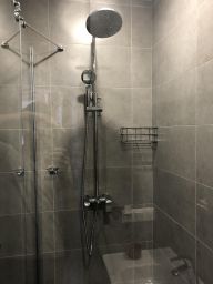 Санузел совмещенный. Инсталляция Geberit , встроенная душевая кабина (120*90), тропический душ, большое зеркало с подсветкой, раковина Roca, выдвижные шкафы с доводчиками и тд.