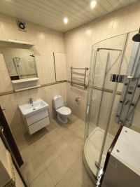 Квартира с удачной планировкой: большая комната, просторная кухня (при желании можно организовать кухню-гостиную или дополнительную зону отдыха), вместительный коридор и огромная лоджия. Отдельный плюс — увеличенный санузел с душевой кабиной, что обеспечивает дополнительный комфорт в повседневной жизни (всё соответствует фотографиям).