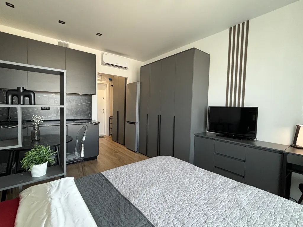 Сдаётся уютная стильная студия 20 м2 в новом доме в ЖК "Одинцово-1", где продумано всё пространство для комфортного проживания. Имеется полутороспальная кровать с высоким ортопедическим матрасом 140*200, рабочий стол, много мест хранения, кухня укомплектована плитой/микроволновкой/посудой/чайником/большим холодильником, шторы блэк-аут, в ванной душевой уголок, стиральная машина с сушкой, установлен кондиционер, есть гладильная доска/утюг.