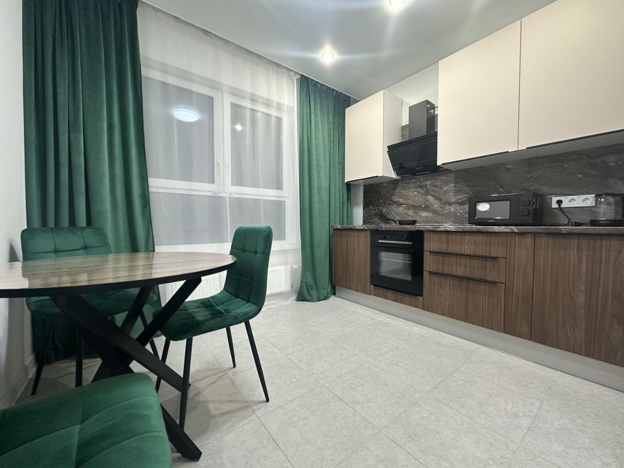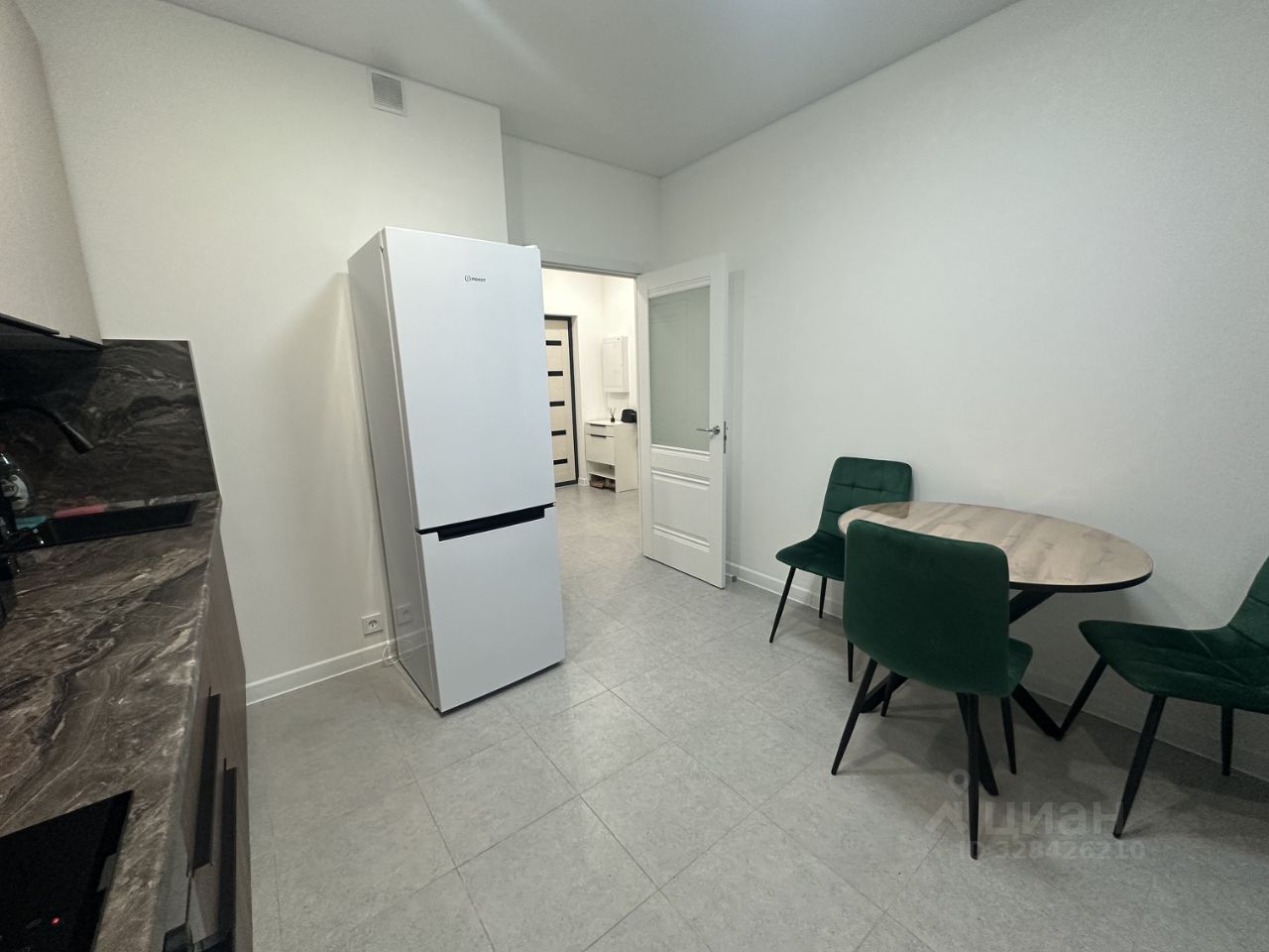 Квартира полностью укомплектована мебелью и новой бытовой техникой: холодильник, варочная панель, духовой шкаф, вытяжка, микроволновая печь, посудомоечная машина, электрический чайник и стиральная машина.