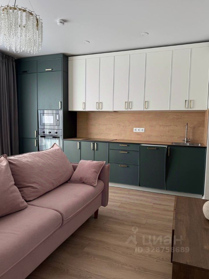 В квартире имеется вся мебель и техника. Кухня оборудована встроенной техникой: холодильник, микроволновка, духовой шкаф, индукционная плита, вытяжка, посудомоечная машина.