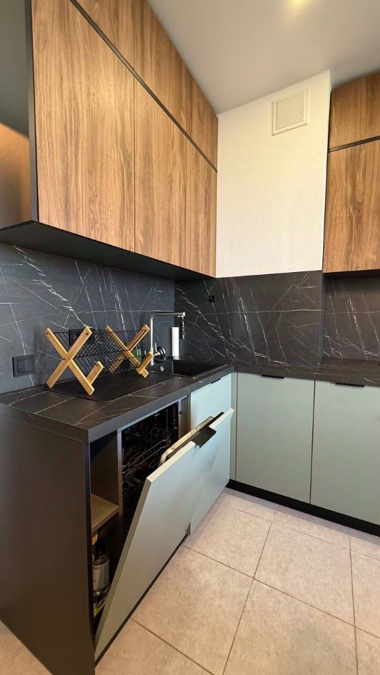 Для вашего удобства в квартире есть пылесос, телескопическая швабра, раскладная сушка для белья, бельевая корзина.