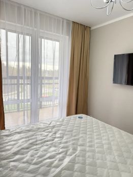 Квартира полностью обставлена современной мебелью и оборудована всей необходимой техникой: холодильник, телевизор и стиральная машина.