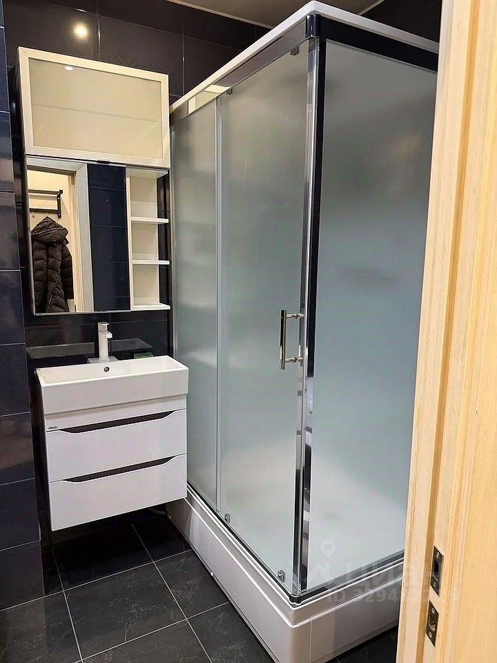 В квартире есть всё необходимое для комфортного проживания: косметический ремонт, удобная мебель на кухне и в комнате, а также полный комплект техники — холодильник, стиральная машина, кондиционер и телевизор. Санузел совмещённый и оборудован душевой кабиной, что делает пространство более функциональным.