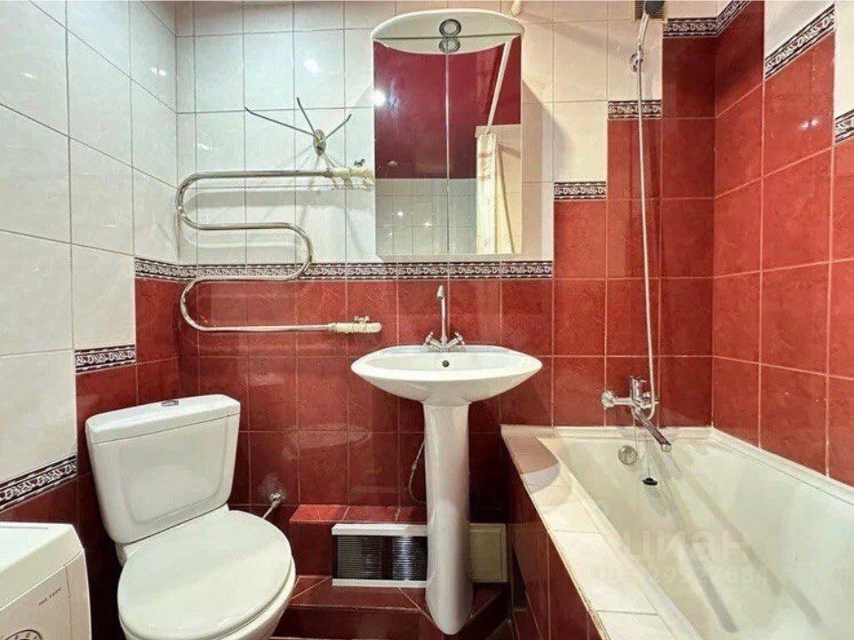 Ванная комната и туалет совмещены, установлена стиральная машинка, новая сантехника и чугунная ванна. Бесперебойная подача горячей и холодной воды.
