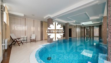 Помещение бассейна 125 кв.м., бассейновая чаша 14 метров (бассейн с гидромассажем, противотоком и гейзером). Сауна, санузел, душевая. Комната отдыха с барной стойкой, оборудованной в том числе холодильником 30 кв.м. Кинозал 18 кв.м. Хозяйственное помещение - прачечная 16 кв.м.