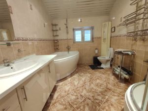 Цокольный этаж - комната персонала с санузлом, баня с душем, бильярдная с комнатой отдыха, комната хранения.