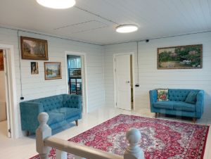 В доме большая кухня-столовая с зоной отдыха, большая гостиная, две спальни, три сан.узла.