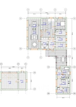 Основной дом : 1-й этаж -- гостевая с библиотекой и столовой, кухня, комната, спальня, с/у, хоз комната;