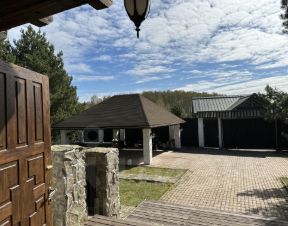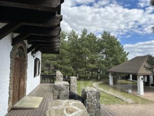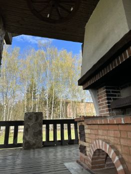 Дом находится на большом участке 20 соток. Ворота открываются с пульта, большая крытая парковка под навесом на 3 ММ , на территории много зелени и деревьев !