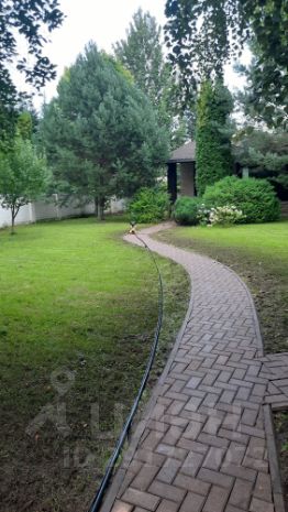 Участок площадью 15 соток обнесён капитальным каменным забором и оформлен в стиле ландшафтного парка: газоны, декоративные растения и дорожки для прогулок. Природный рельеф участка создаёт ощущение уединённости и гармонии.