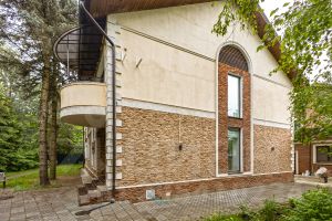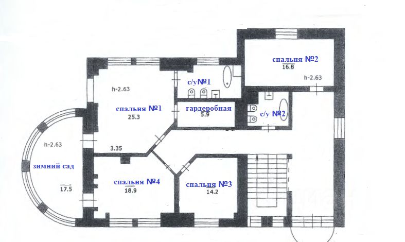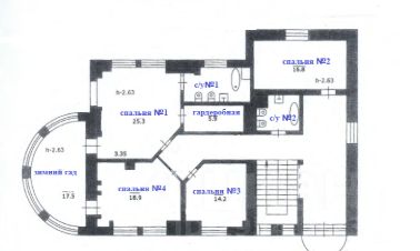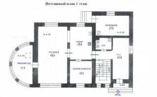 Планировка 1-го этажа: зимний сад, кухня, просторная гостиная, спальня, котельная, сан.узел; 2-го этажа: зимний сад, 4 спальни, гардеробная комната, балкон, 2 сан.узла. Подвал используется, как техническая зона и подсобные помещения.