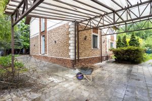 Дом частично меблирован и укомплектован всей необходимой бытовой техникой. На территории дополнительно расположен гостевой дом с гаражом (общей площадью 160 кв.м., оборудованный мебелью и техникой), беседка, поленница, бытовка.