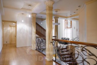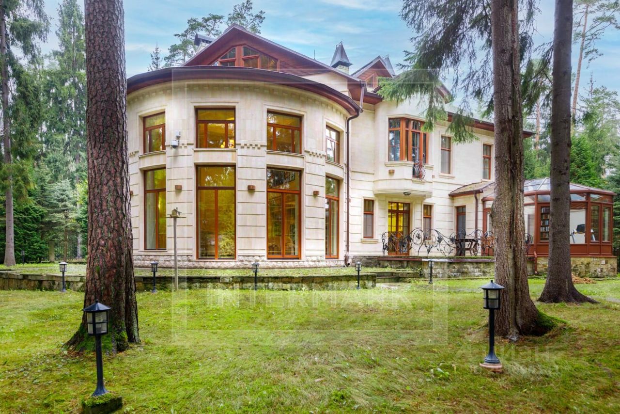 ID 45630: Дом в легком классическом стиле в статусном поселке "Сосновый бор". В доме много света, высокие потолки, лаконичная отделка в светлых тонах, Просторная гостиная со вторым светом. Функциональная и правильная планировка: Цоколь: комната для персонала с с/у, комната свободного назначения, постирочная. 1 эт: прихожая, кухня-столовая со 2-м светом, рабочая кухня, кабинет с санузлом и гардеробной с выходом в зимний сад и на террасу, комната водителя с с/у, постирочная, 2 гардеробные, спальня с санузлом, санузел. 2эт: хозяйская спальня с гардеробной и санузлом, спальня с с/у, спальня. 3 эт: холл, спальня с гардеробной, спальня, санузел. Тихий участок с вековыми соснами, дополнительная охрана улицы, отсутствие сквозного движения. На участке гараж на 3 м/м. В поселке круглосуточная охрана, патрулирование, видеонаблюдение. Прекрасная территория с реликтовым лесом и выходом в известный дом отдыха "Сосны" и оздоровительный комплекс Управления Делами Президента РФ. PLEASE FEEL FREE TO CONTACT INTERMARK REAL ESTATE TO GET DETAILED INFORMATION OR TO SET UP A VIEWING! 24/7 HELP DESK SERVICE WITH ENGLISH -SPEAKING OPERATORS
