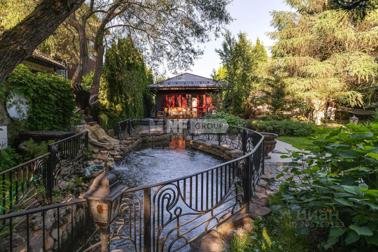 Участок площадью 30 соток включает в себя гараж на 3 машины, искусственный пруд и отдельный гостевой дом. Из окон дома открывается живописный вид на зеленые лужайки сада и площадку с фонтаном.