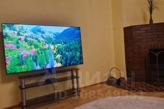 - большая гостиная с П-образным диваном , большой телевизор и настоящий камин.