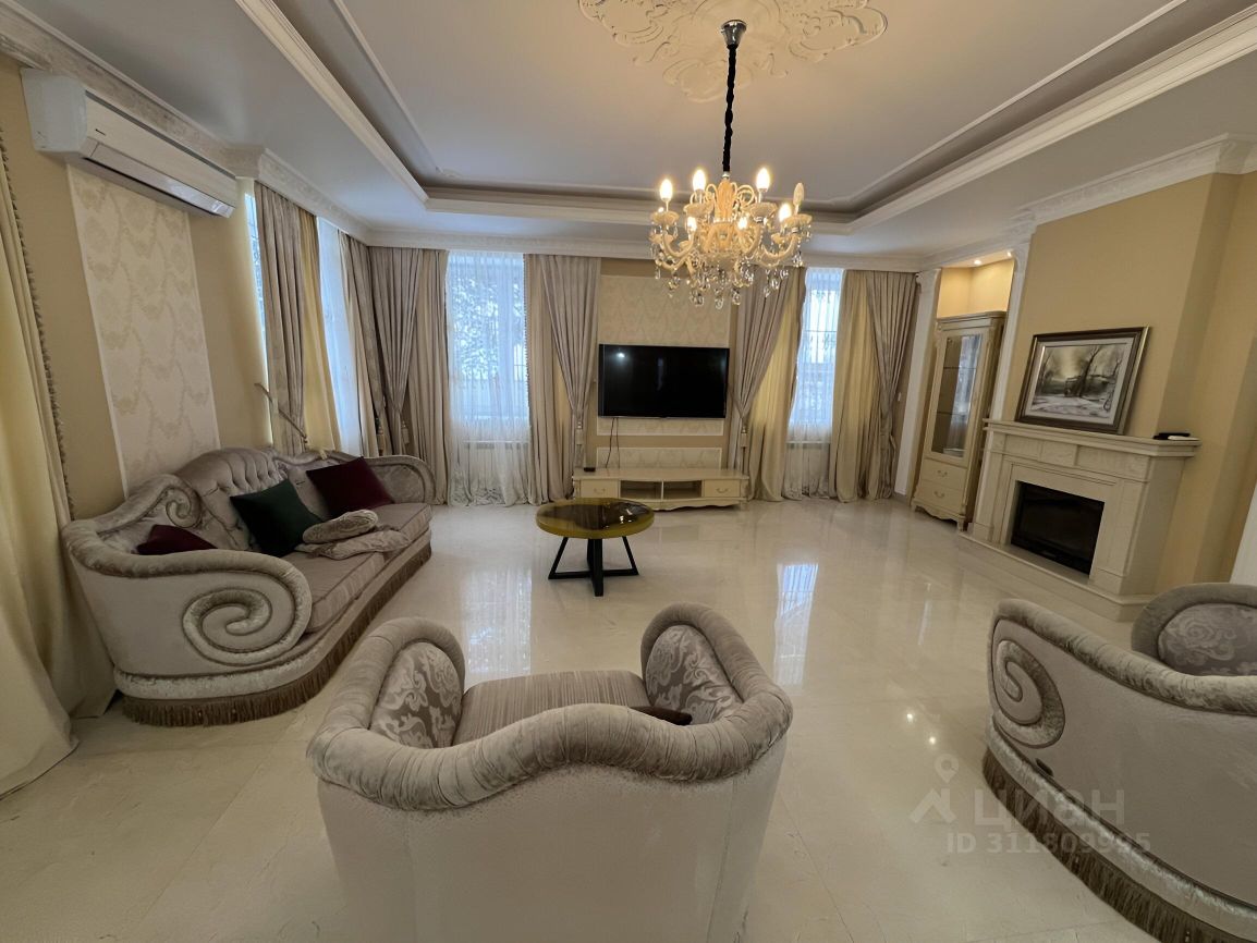 Охраняемый поселок. БЕЗ КОМИССИИ ! Предлагается в долгосрочную аренду классический, светлый, уютный дом для проживания. Вся мебель и бытовая техника. Описание дома: Цоколь: спортивный зал, оснащенный инвентарём, стол для пинг-понга, огромная джакузи, сауна, котельная; 1 этаж: прихожая с гардеробной, гостевой санузел, просторная гостиная с камином, объединённая со столовой, вторая гостиная со своей кухней, комната;