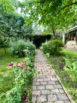 Затерянный среди живописных рублевских пейзажей, маленький роскошный дворец утопает в глубине изумительного сада , состоящего из множества редких растений и цветов, среди которых вы встретите 18 видов хвойных деревьев, магнолии, липы, каштаны, плакучие березы, канадские клены, сирень. Начиная путешествие по каштановой или сосновой аллее, вы очутитесь в укромном месте сада , где произрастают все фруктовые деревья и ягодные кусты, плодоносящие в Подмосковье : яблоня), слива, груша, черешня, вишня, голубика , малина .