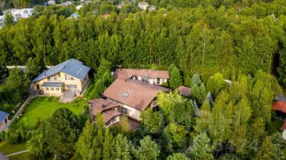 Малые Вяземы. Загородный дом площадью 450 м² построен на просторном полевом участке 20 соток с многолетними хвойными деревьями. Фасад современного здания выполнен из дерева и декорирован камнем. Благодаря панорамному остеклению, высоким потолкам и светлым тонам в отделке пространство наполнено воздухом. Дом полностью меблирован и укомплектован бытовой техникой. Планировка резиденции включает 4 спальни и кухню-столовую-гостиную с дровяным камином. На участке с газоном можно обустроить зону барбекю.