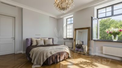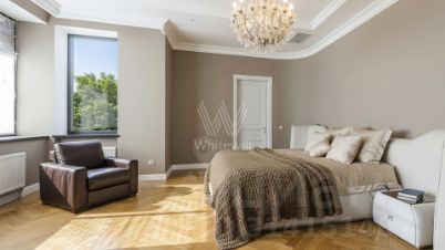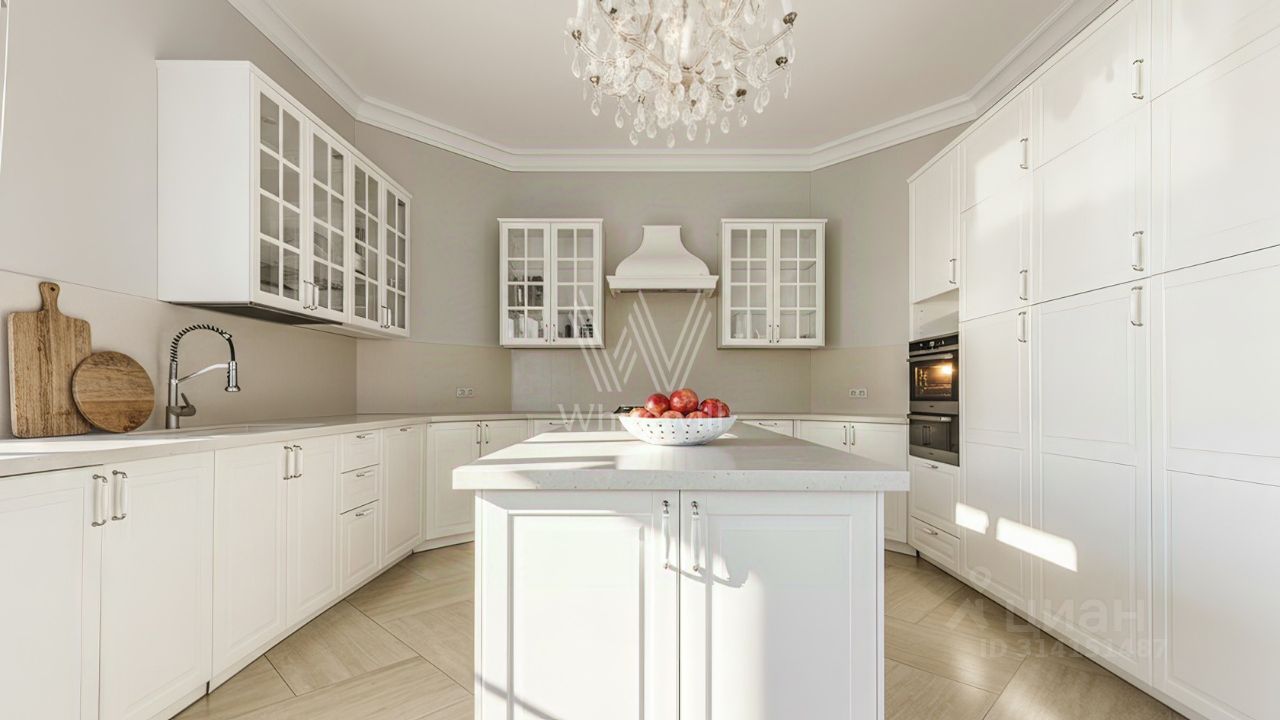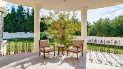 Жуковка. Загородная резиденция площадью 960 м² расположена на полевом участке 16 соток. Фасад кремового оттенка выполнен в классическом стиле и украшен изящными элементами — круглым балконом, эркерами, лепниной и колоннами, придающими дому аристократичный шарм. Интерьеры оформлены в мягкой серо-бежевой палитре, дополнены мебелью, встроенной бытовой техникой и современной сантехникой.