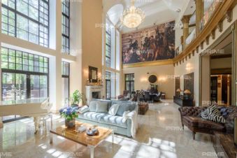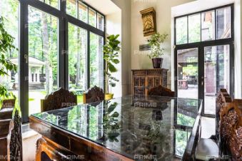 Дом представляет собой трехэтажный особняк, площадью 1400 кв.м полностью меблированный и окруженный уютным садом с изысканными скульптурами, прогулочными дорожками и фонтаном. Внутри особняк выполнен в стиле эклектика с преимущественным классицизмом.