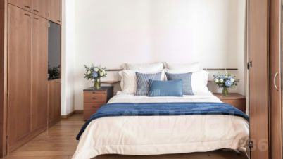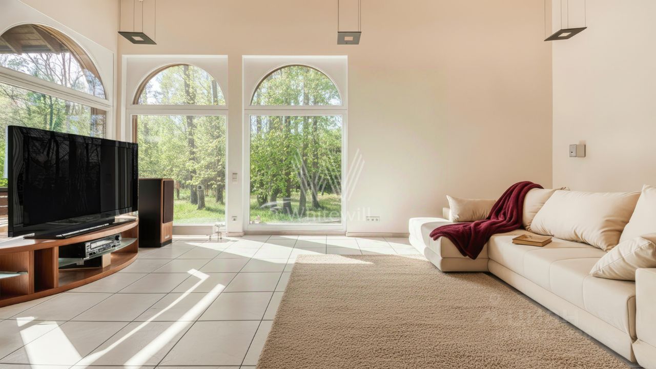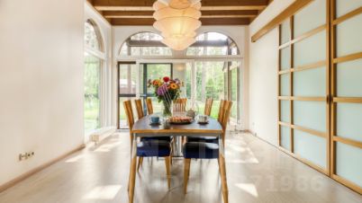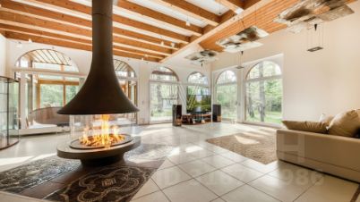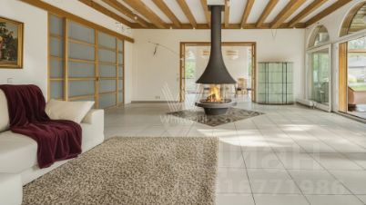 Внутри реализован ремонт в скандинавском стиле с акцентом на светлые оттенки и натуральные материалы. Высокие потолки от 3 до 6 метров создают ощущение простора и наполненности воздухом, а открытая планировка формирует единое функциональное пространство. Центральным элементом гостиной является дизайнерский подвесной камин. Кухня Boffi с современным оборудованием органично вписана в общий интерьер. Благодаря панорамным окнам каждая комната наполнена мягким светом и теплом.