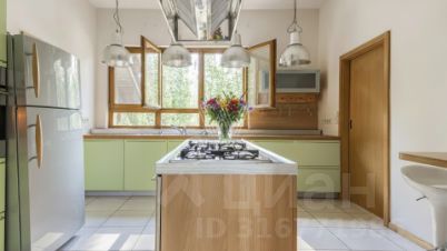 Планировка включает гостиную, кухню, столовую, 4 спальни, кинотеатр, игровую, погреб и комнату для персонала. На ухоженном участке среди хвойных деревьев оборудованы беседка, детская площадка и теплица. А по всему периметру проложены каменные дорожки и установлены уличные светильники. Дополнительно возведены гараж на 2 машины и навес.