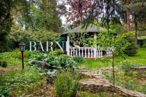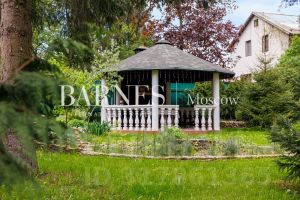 На участке летняя крытая беседка с барбекю, гараж на 2 м/м с мойкой, с квартирой для персонала (свой выход за периметр участка).