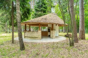 Дом расположен в охраняемом лесном поселке, с живописным озером и прогулочными зонами, спортивной и детскими площадками, открытым теннисным кортом. В поселке есть частная школа "Сосны", автомойка, служба клининга.