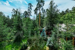 На ЛЕСНОМ УЧАСТКЕ выполнен ландшафтный дизайн, растут хвойные и лиственные деревья, кустарники, установлено освещение, есть теннисный корт.