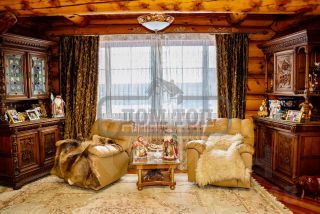 На 1-м этаже: каминный зал 100 кв.м., зона кухни, спальня. Камин выполнен из русских изразцов. Парная из кедра с камнями из нефрита на дровах, хаммам, купель, фитобочка, душ Шарко, бассейн 2*3. На 2-м этаже находится бильярдная, большая спальня. Рядом с домом мангальная зона, большая веранда, зеленая зона для детей и занятий йогой