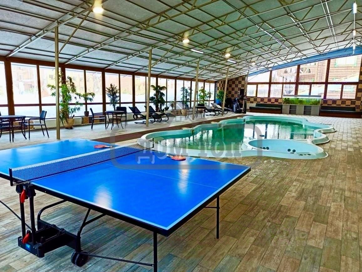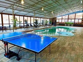 СПА-комплекс площадью 500 кв.м.: гостиная 300 кв.м. на 50 персон, 2 спальни. Подогреваемый бассейн 5*15*1,9 с противотоком; русская баня, хаммам, турецкая баня; теннисный стол, бильярд12ф; тренажеры, 2 раздевалки, просторная кухня и комната отдыха. На втором этаже расположены 2 комнаты отдыха с лоджией и видом на поле и лес. Телевизор.