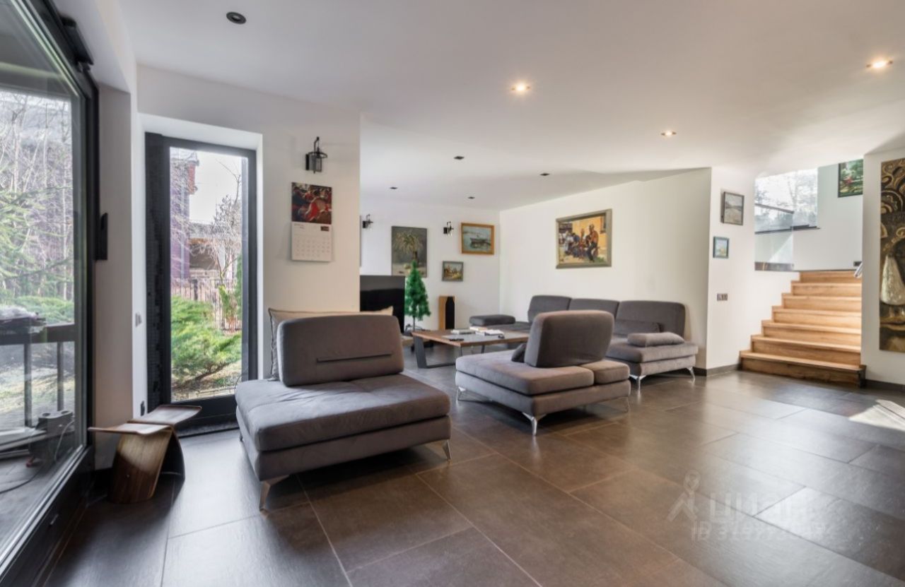1 этаж: прихожая, холл, просторная гостиная с панорамными остеклением и выходом на террасу и участок, кухня-столовая, библиотека с бильярдом, 2 комнаты и сан.уз с отдельным выходом, СПА-зона с плавательным бассейном (8х9 м) и сауной.