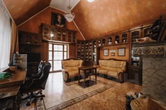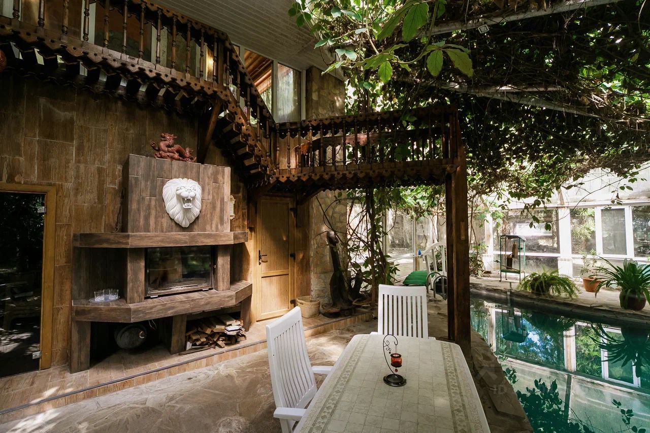 Три камина (один на открытом воздухе для вечерних бесед и дум. Бассейн по типу мексиканского тропического синода с камином, заросший тропическими лианами, с отдельным душем и туалетом. Два санузла в доме рядом со спальнями. Библиотека, кабинет. Ресторан Luricio — это место, где вы можете насладиться настоящей итальянской пиццей, приготовленной в дровяной печи 800 м.