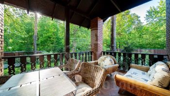 Дом расположен на красивом лесном участке размером 33 сотки, на котором кроме главного дома расположены: