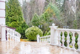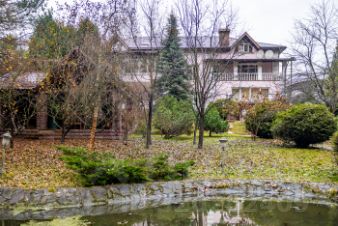 Дом в классическом стиле с роскошной парадной лестницей, дорогой отделкой, резной мебелью из дерева и мрамора.