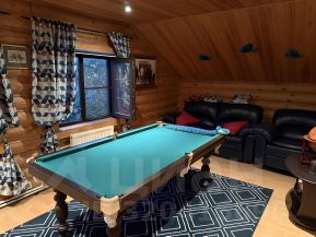 Внутри дома располагаются шесть комфортабельных спален, способных разместить до 20 человек. Кухня оборудована всем необходимым для готовки и сервировки, что делает обстановку ещё более удобной. Для тех, кто ищет развлечений, в доме предусмотрены коллекция настольных игр и бильярд, что обеспечит интересное времяпрепровождение для гостей всех возрастов.
